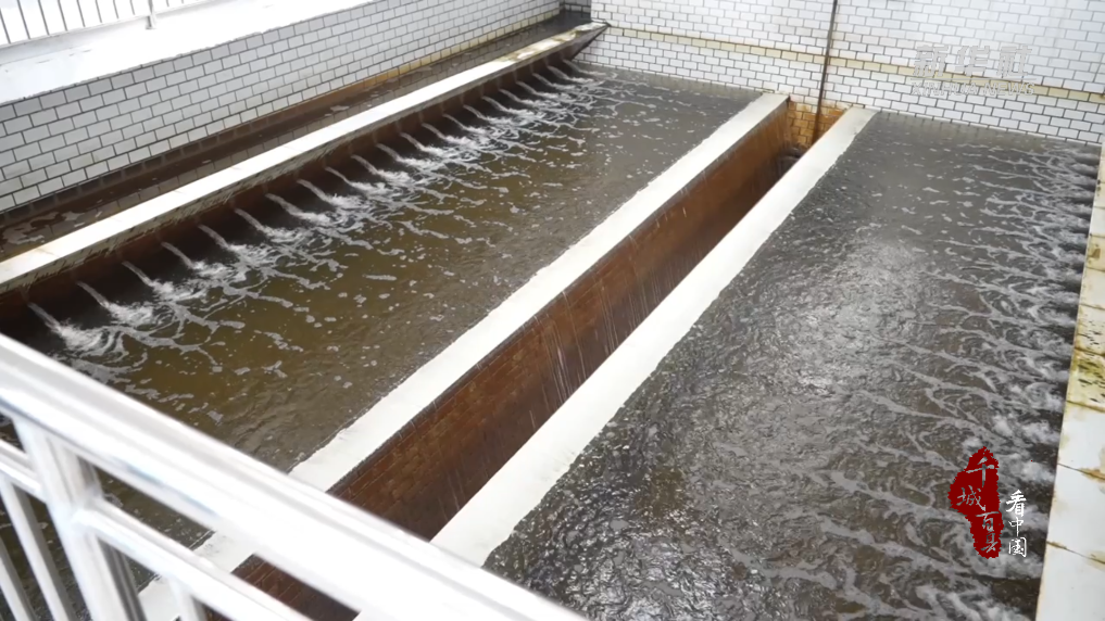 在净水车间内,河水流入如“九宫格”排列的大沉淀池,一路流到最后一个净水间时,已变得十分清澈。中水进入水厂后,通过混合、絮凝、煤砂过滤等处理,达到工业用水标准,成为可广泛使用的水资源。