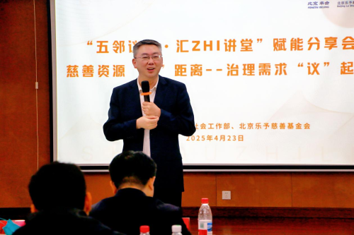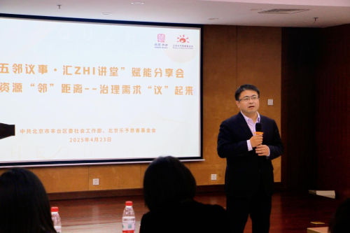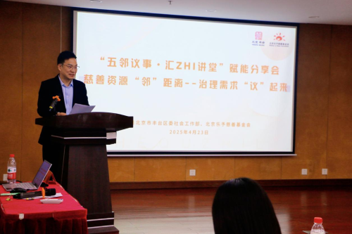 4月23日,北京市丰台区委社会工作部部长杨勇带队,组织全区26个街镇主管社会建设工作的负责同志赴北京乐予慈善基金会开展调研座谈。活动以“慈善资源‘邻’距离——治理需求‘议’起来”为主题,重点学习社区治理专项基金运营经验,并就基层治理中的“五社联动”机制展开交流。