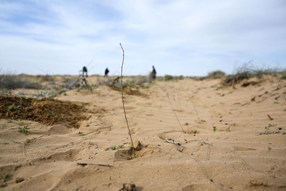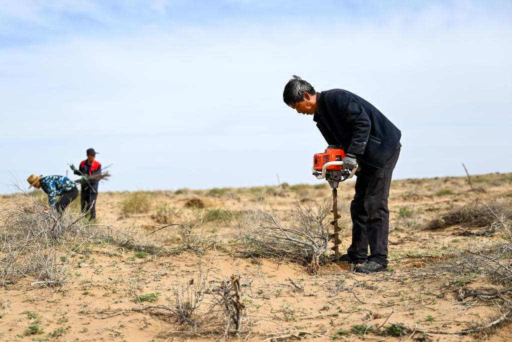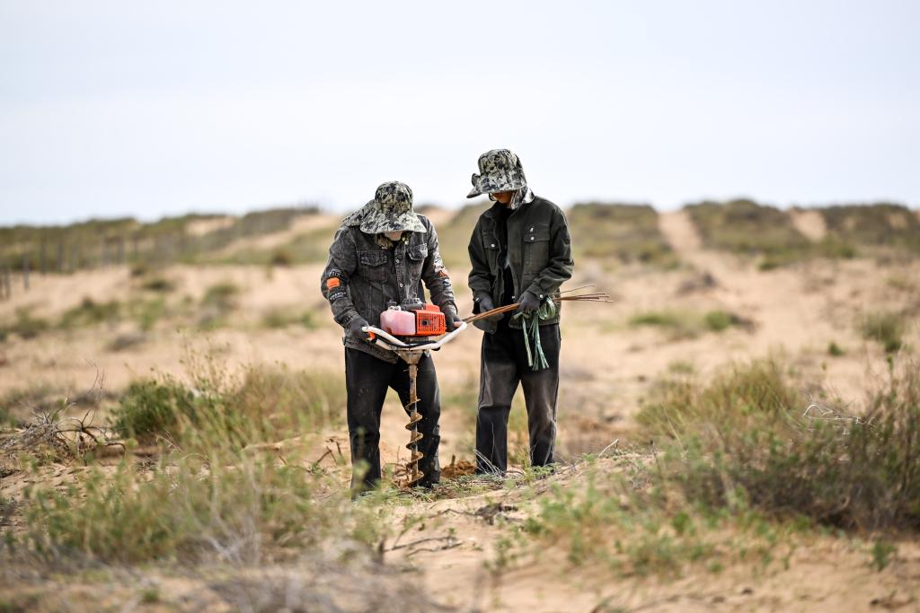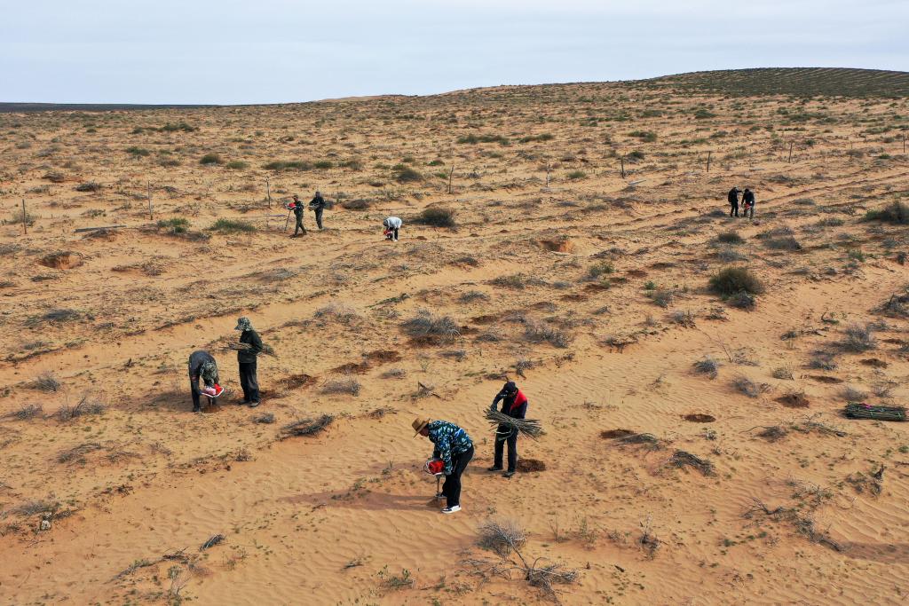 连日来,在内蒙古鄂尔多斯市杭锦旗境内的库布其沙漠里,治沙工人忙着栽种沙柳、柠条等沙生植物,开展库布其沙漠生态治理。今年以来,杭锦旗多举措打好“三北”工程攻坚战,实施建设库布其沙漠锁边林草带、风沙路径阻隔带等5个治沙项目,计划年内完成治沙任务100万亩以上。