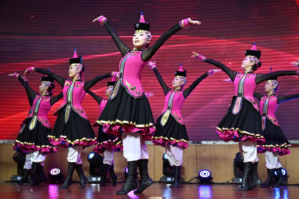 5月9日,演员在内蒙古自治区妇幼保健院学术报告厅表演舞蹈。