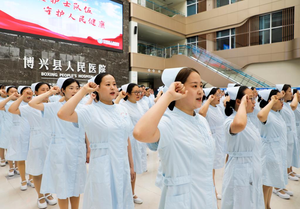 5月9日,山东省博兴县人民医院护士参加集体宣誓活动。