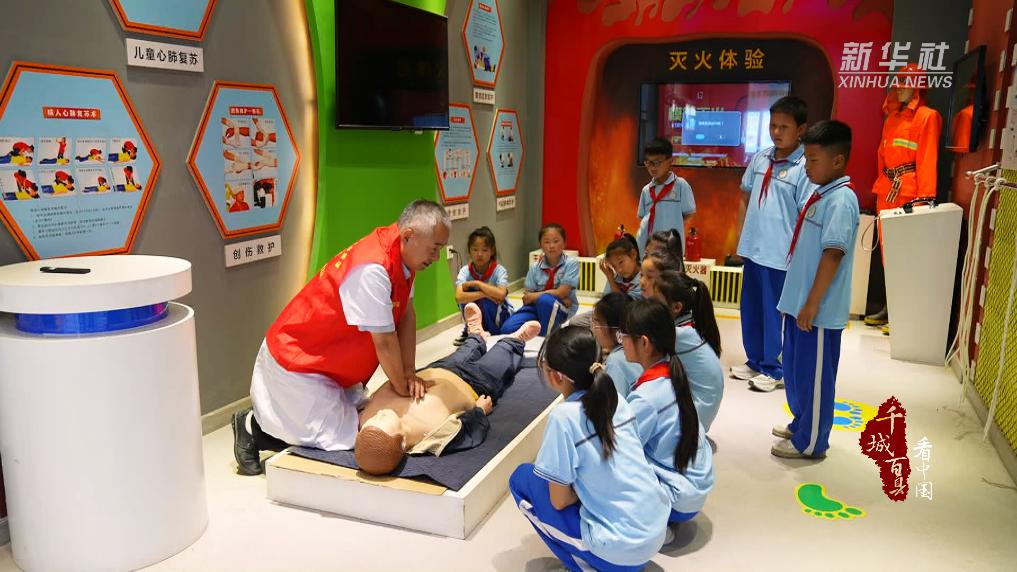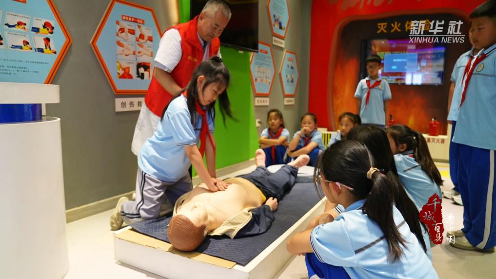 消防模拟体验区内,工作人员用通俗易懂的语言讲解消防知识,指导学生查找火灾隐患、操作灭火器。此外,孩子们还在专业人员指导下,学习了心肺复苏、气道梗阻等急救技能。