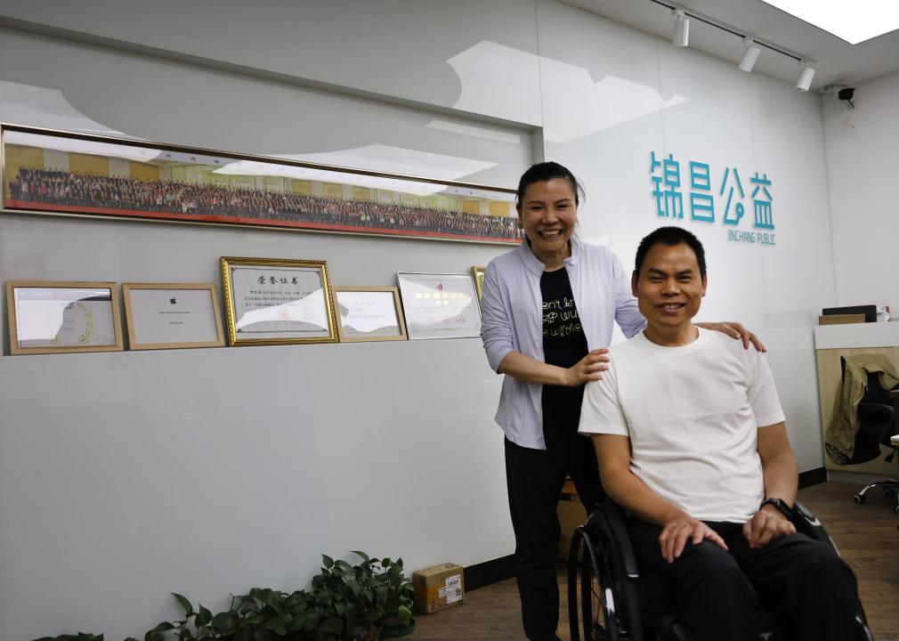 5月17日,柯水昌和妻子李静在锦昌公益服务中心合影。
