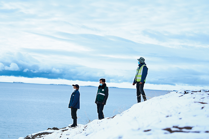 在青海省果洛藏族自治州玛多县扎陵湖乡勒那村,三江源国家公园黄河源园区生态管护员在扎陵湖畔巡护(资料照片) 李占轶摄 / 本刊