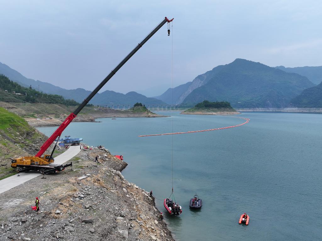 5月21日,四川省森林消防总队特勤大队一中队在岷江成都段开展水域救援技术训练(无人机照片)。