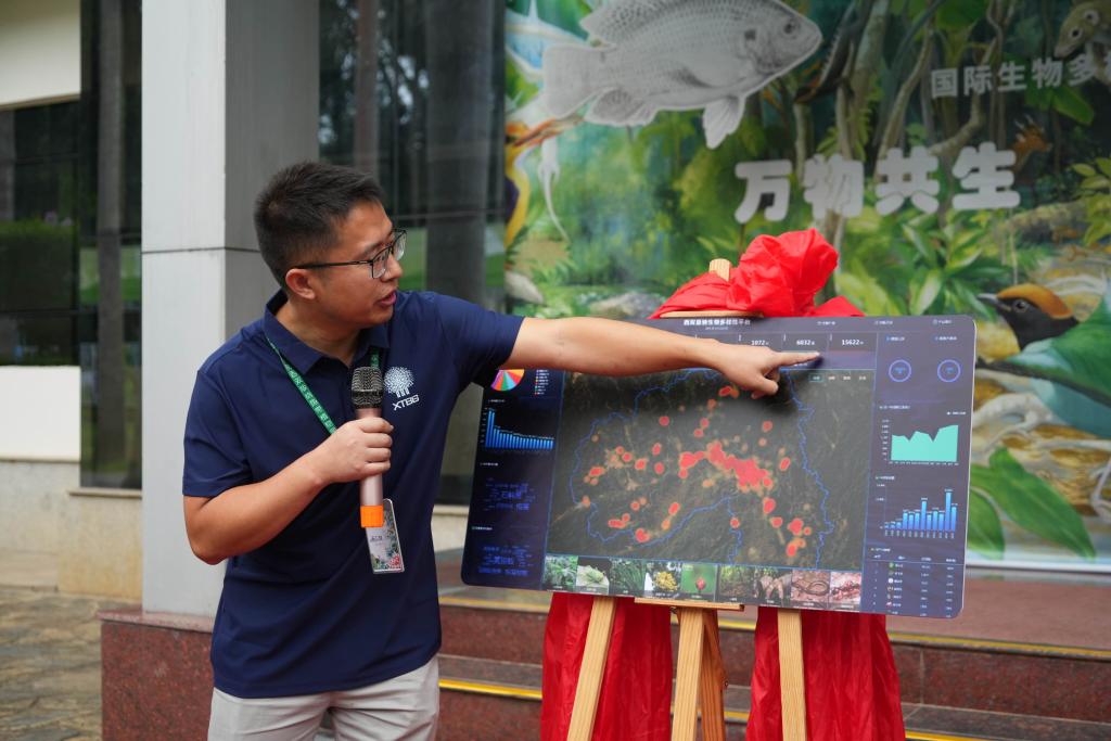 5月22日,中国科学院西双版纳热带植物园“西双版纳生物多样性平台”上线,中国科学院西双版纳热带植物园高级工程师朱仁斌在介绍平台界面。(胡攀摄)