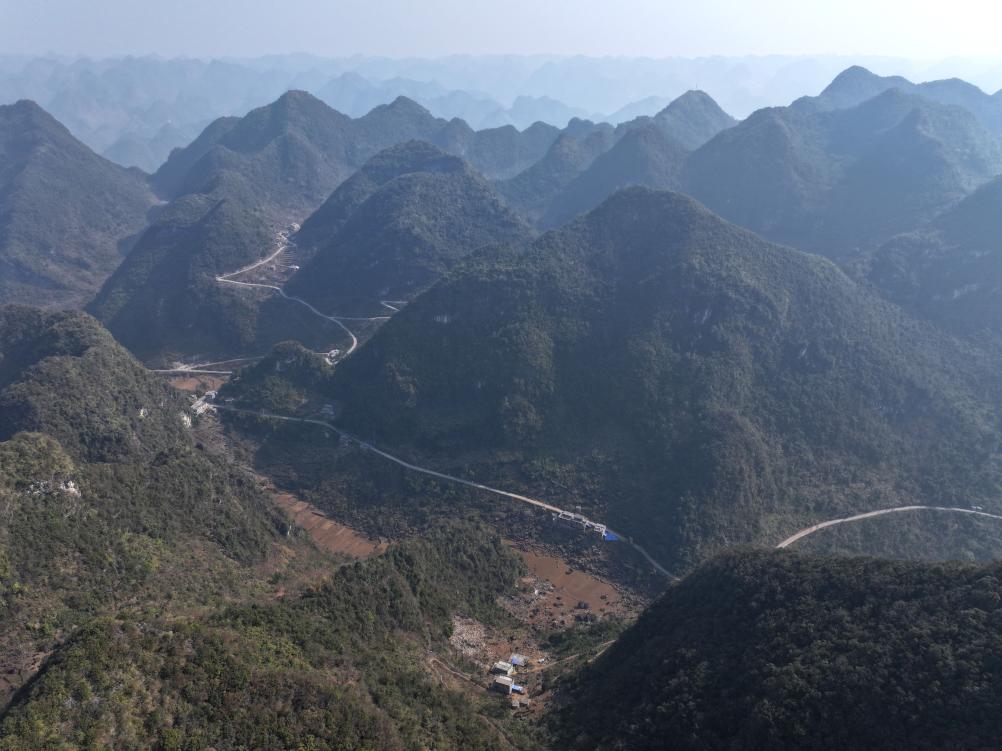 这是广西大化瑶族自治县板升乡弄雷村哈宝屯(无人机照片,2025年1月20日摄)。十年前,哈宝屯已经从不通公路的山弄里,整体搬迁至公路边。