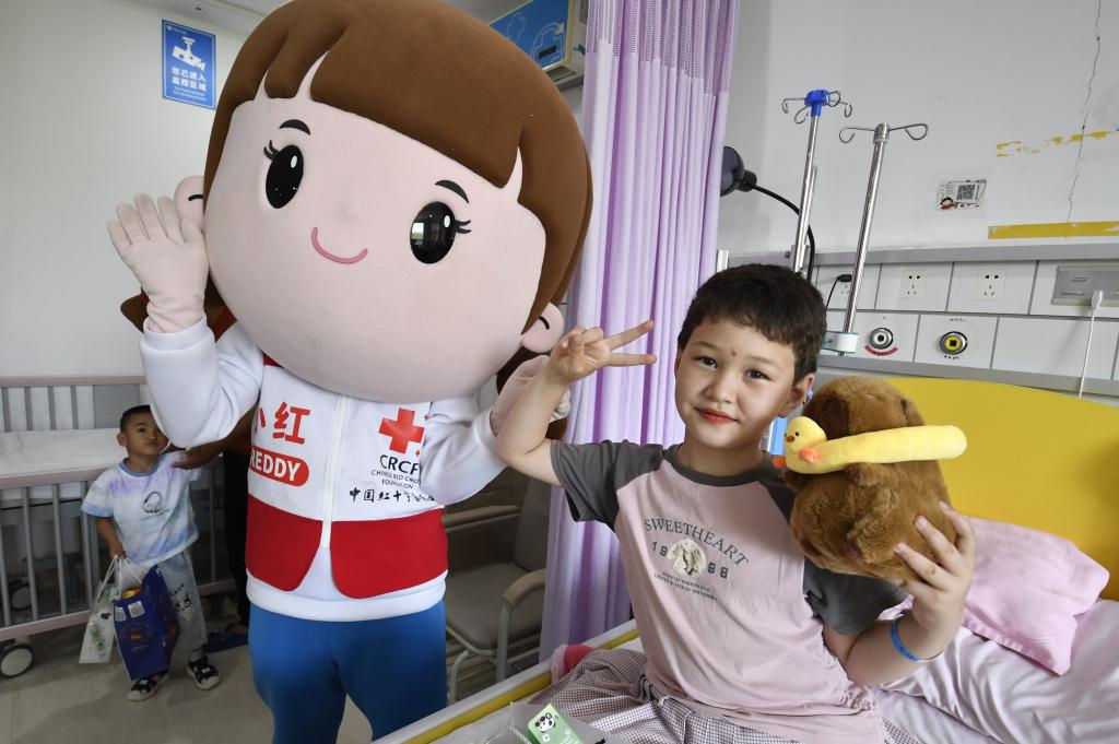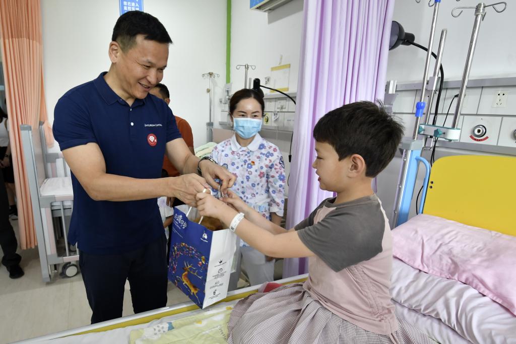 5月28日,中国红十字基金会捐赠单位代表给来自新疆维吾尔自治区阿克苏地区的先天性心脏病患儿送来节日祝福。