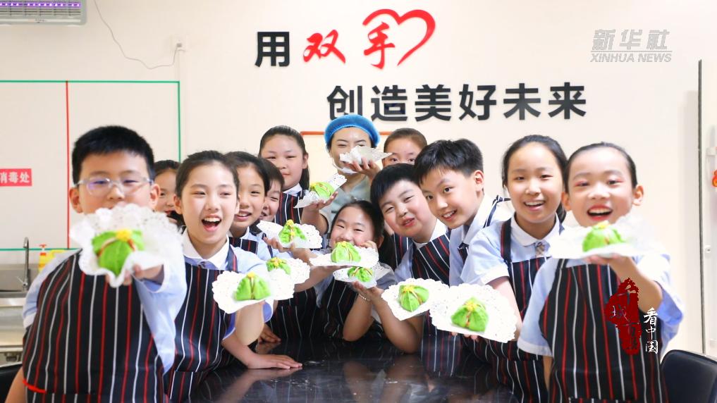 端午节将至,山东省枣庄市君山路小学的孩子们走进传统工艺工作室,亲手制作别具特色的“花馍粽子”。他们用菠菜汁、胡萝卜汁等天然食材为面团染色,通过揉、捏、剪、刻等手法,将普通面团变成一个个色彩明艳、栩栩如生的端午“粽子”。