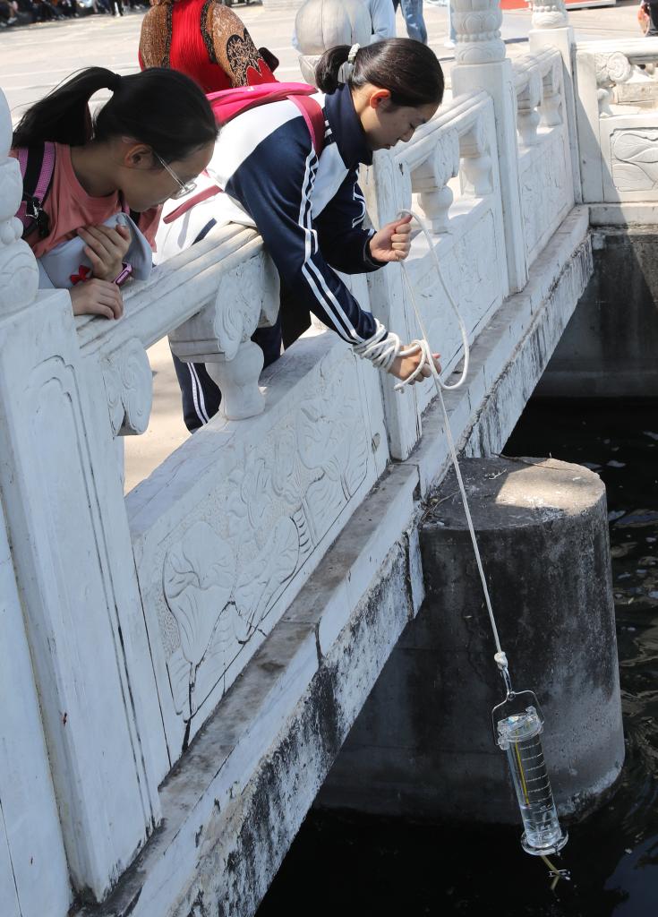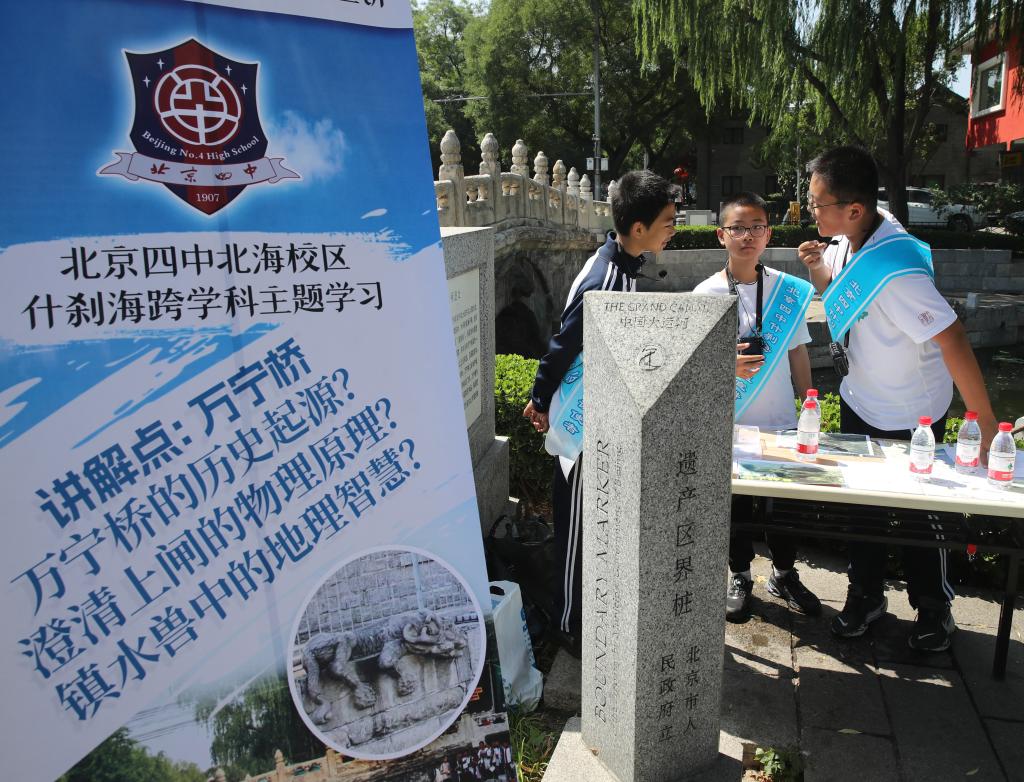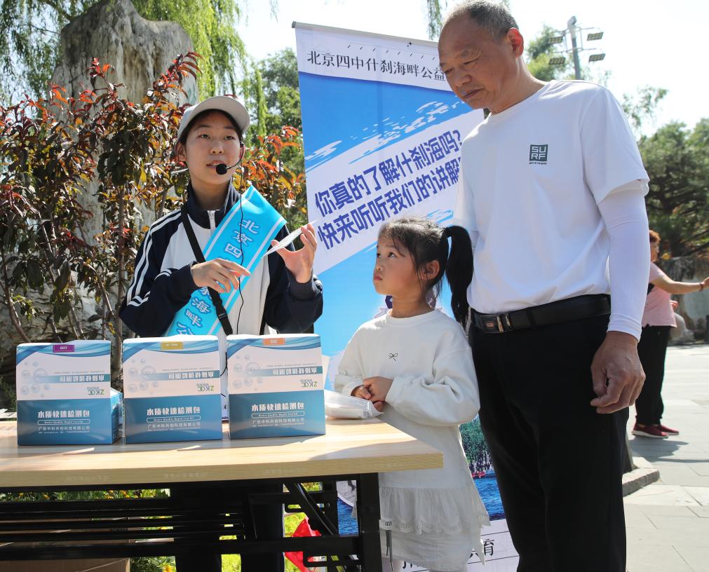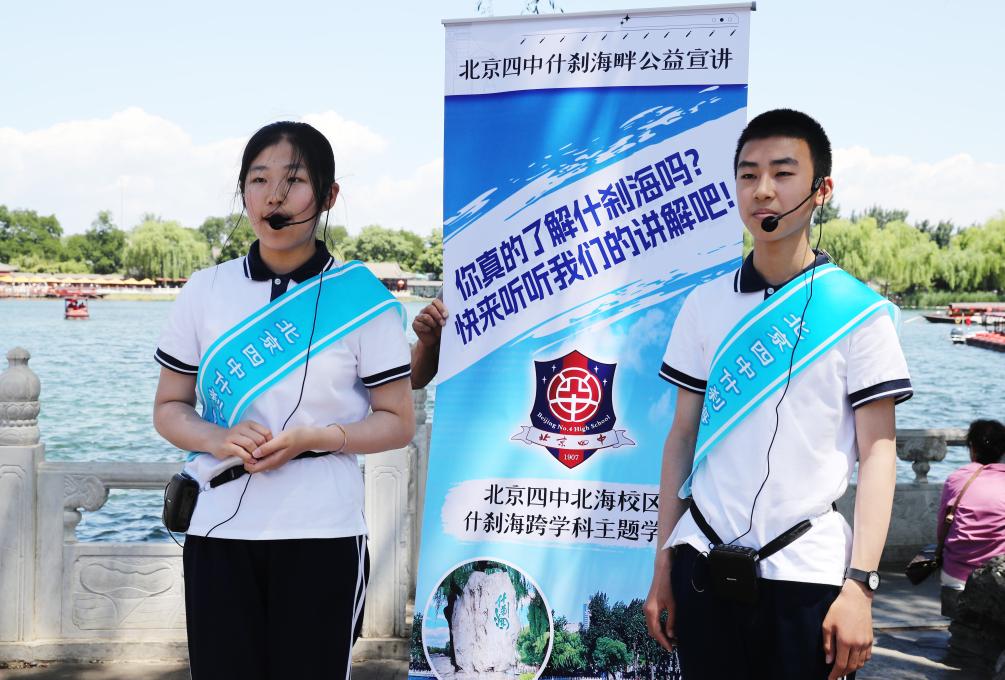当日,北京四中(北海校区)和西城区什刹海街道联合举办主题教育活动。学生讲解员们在荷花市场、银锭桥及万宁桥等地点,向游客宣讲什刹海历史文化知识,并通过现场水质检测介绍什刹海及周边水域环境保护情况。