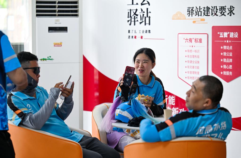 近年来,天津市总工会积极整合基层工会服务场地,着力推动工会驿站建设,努力提高站点的覆盖率、知晓率、使用率。截至目前,天津全市已建成6000余个工会驿站,为环卫工人、快递小哥、出租车司机等各行业的户外劳动者提供饮水、饭食加热、临时休息、手机充电、如厕等服务。小小的工会驿站成为户外劳动者的温馨港湾。