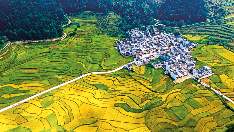 广西靖西市新靖镇东利村周边待收的稻田(2023 年 10 月 4 日摄) 新华社发(赵京武摄)