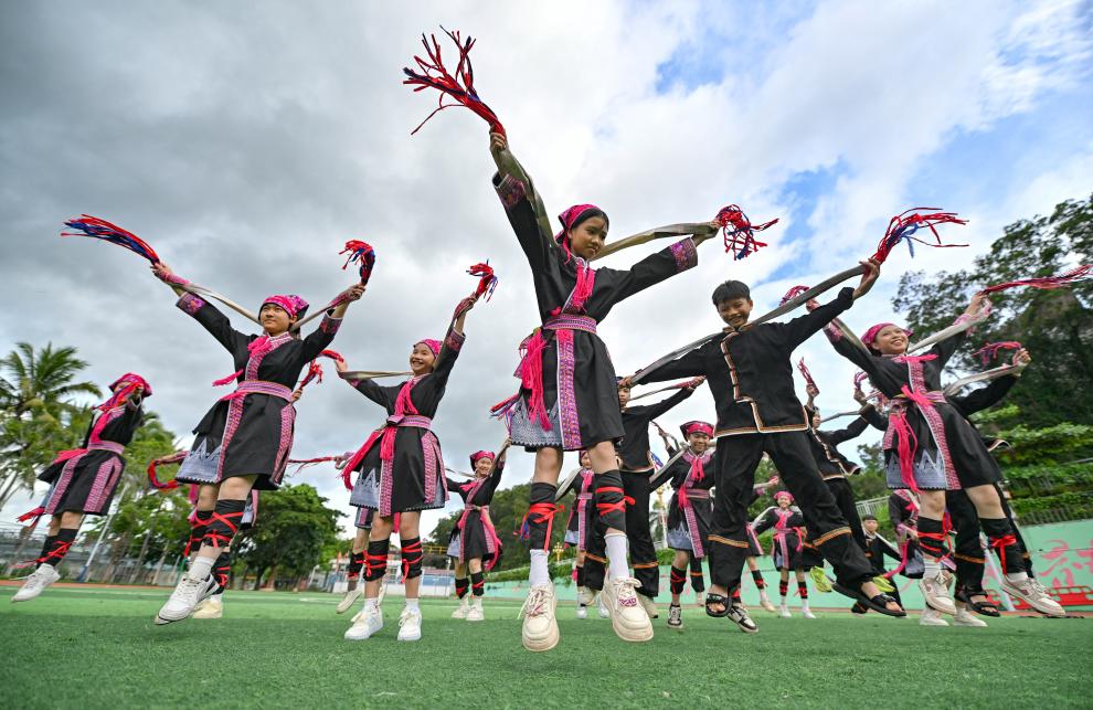 近年来,海南省五指山市打造“非遗进校园”工程,在14所公办中小学开设非遗课程,培养青少年对传统文化的热爱,助力非遗传承与发展。