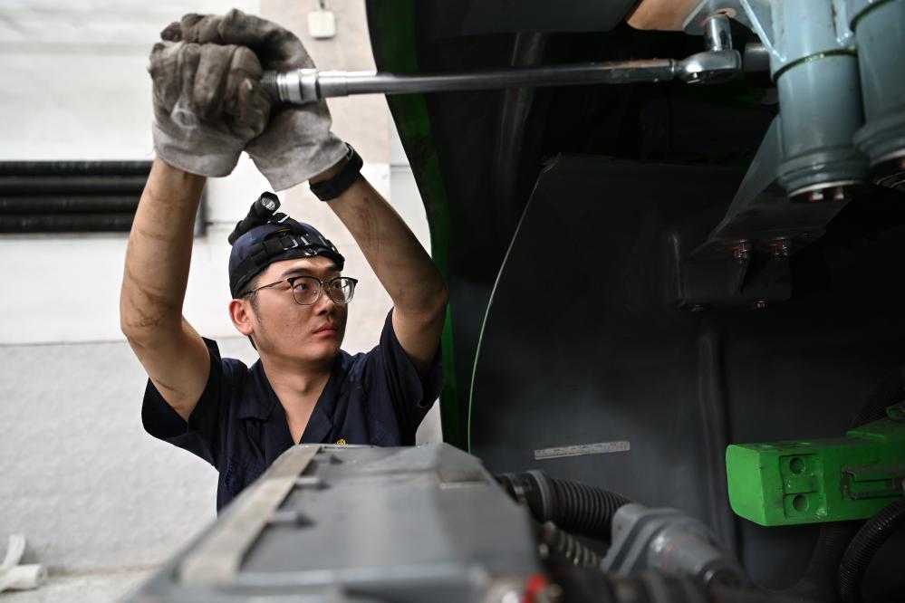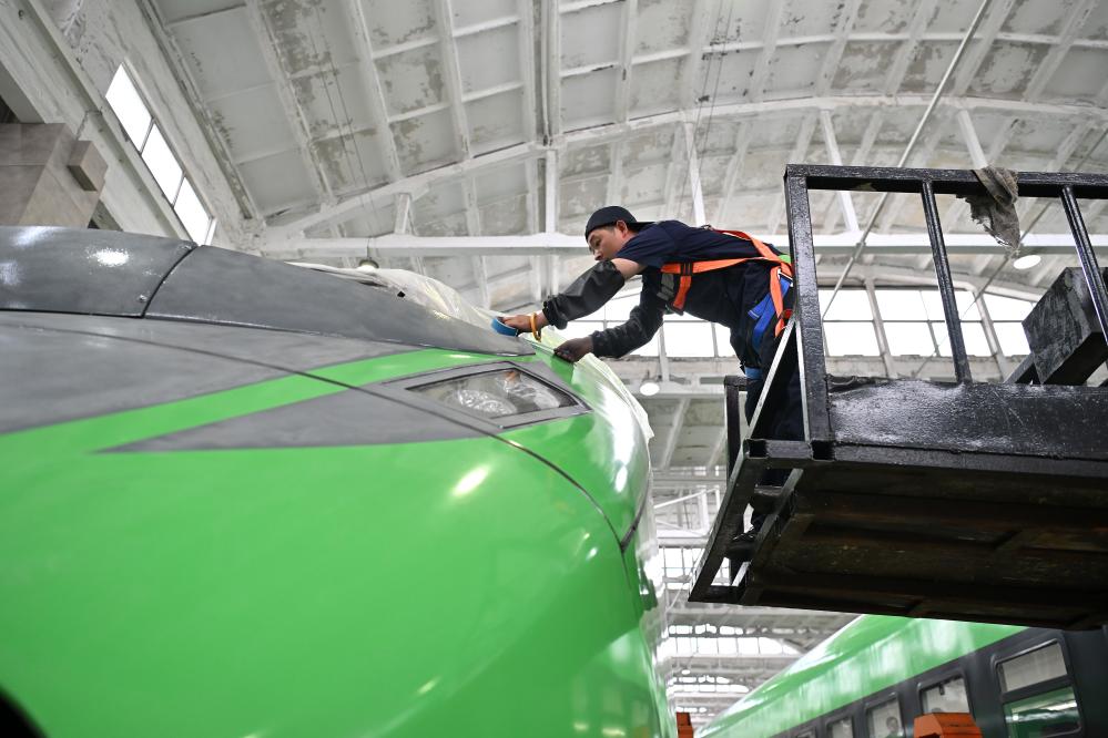 连日来,在中国铁路太原局集团有限公司太原车辆段,检修人员加紧对列车进行检修、维护、全方位排障,为即将到来的暑运做准备。