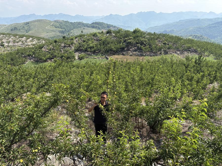 夏日炎炎,北盘江附近壮阔的峡谷地带间,个头硕大、青翠渐黄的蜂糖李悬挂在枝头,几天后即将迎来成熟采摘期。
