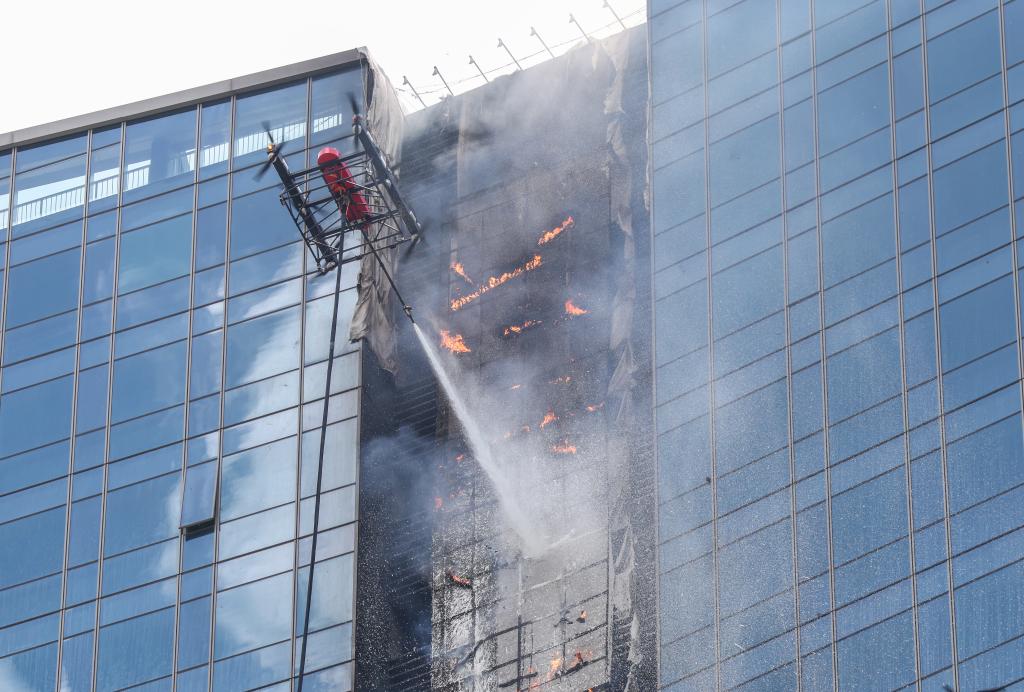 当日,“应急使命·2025”城市高层建筑火灾扑救演习在广东省深圳市举行。