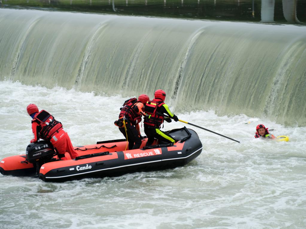 7月2日,消防员在成都锦江进行“落水脱困”训练。
