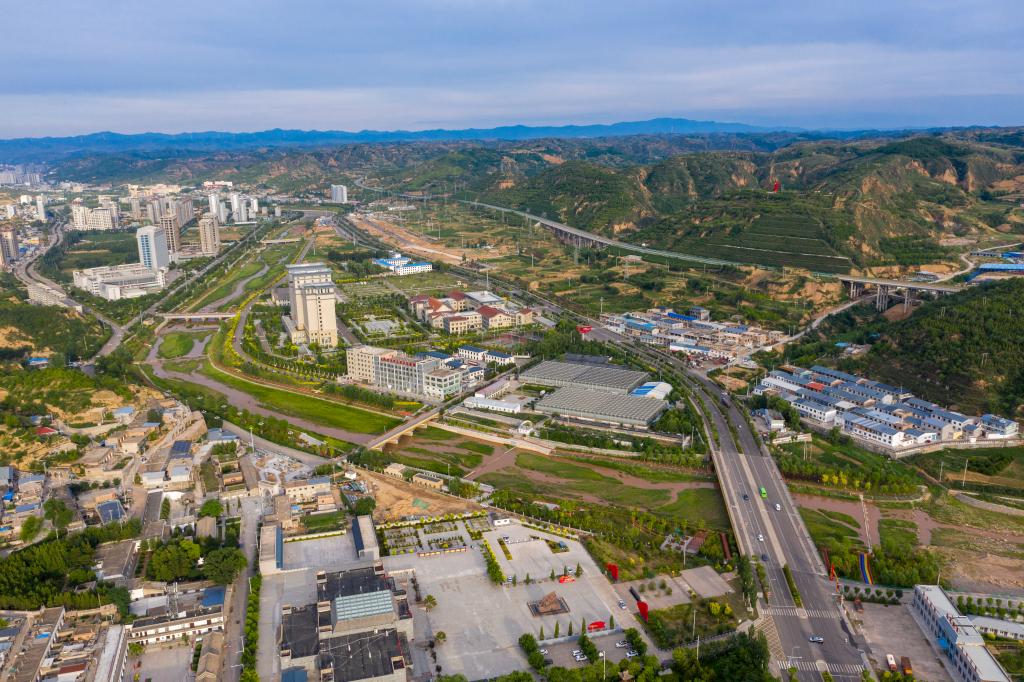 山西省吕梁市兴县县城一景(7月1日摄,无人机照片)。