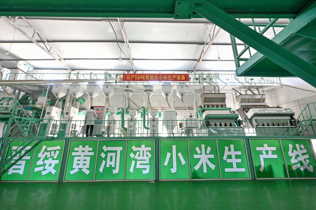 山西省吕梁市兴县晋绥黄河湾农业开发有限公司的小米生产线(7月1日摄)。