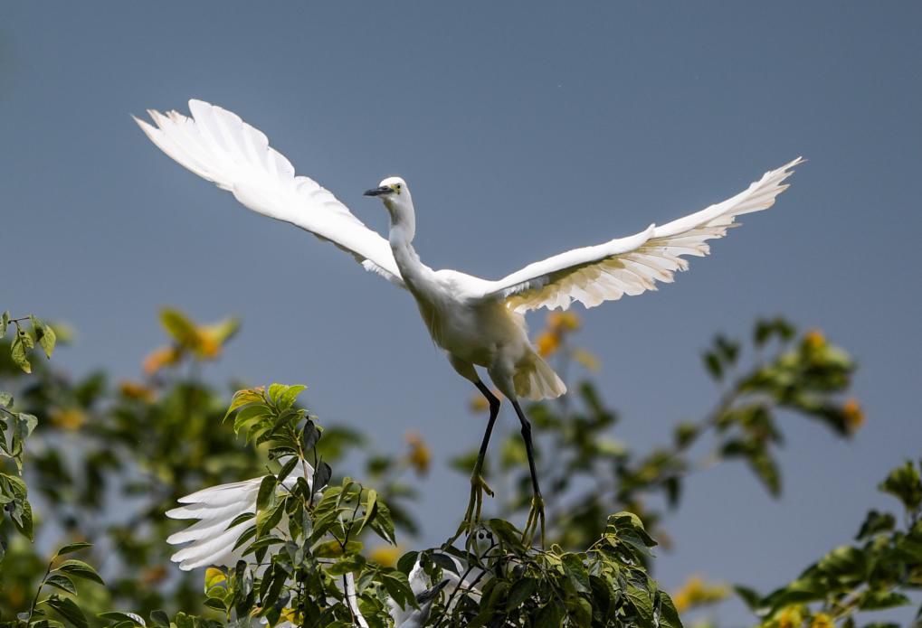这是7月7日在昆明滇池海洪湿地公园拍摄的白鹭。