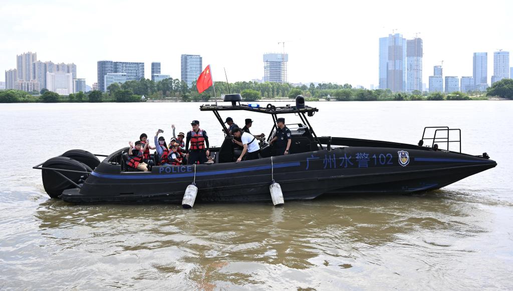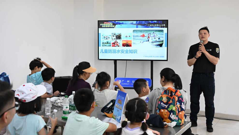当日,广州市公安局“平安广州宣讲团”组织学生等走进市公安局水上分局,近距离感受水上警察装备和救援技能,在互动体验中学习安全知识。
