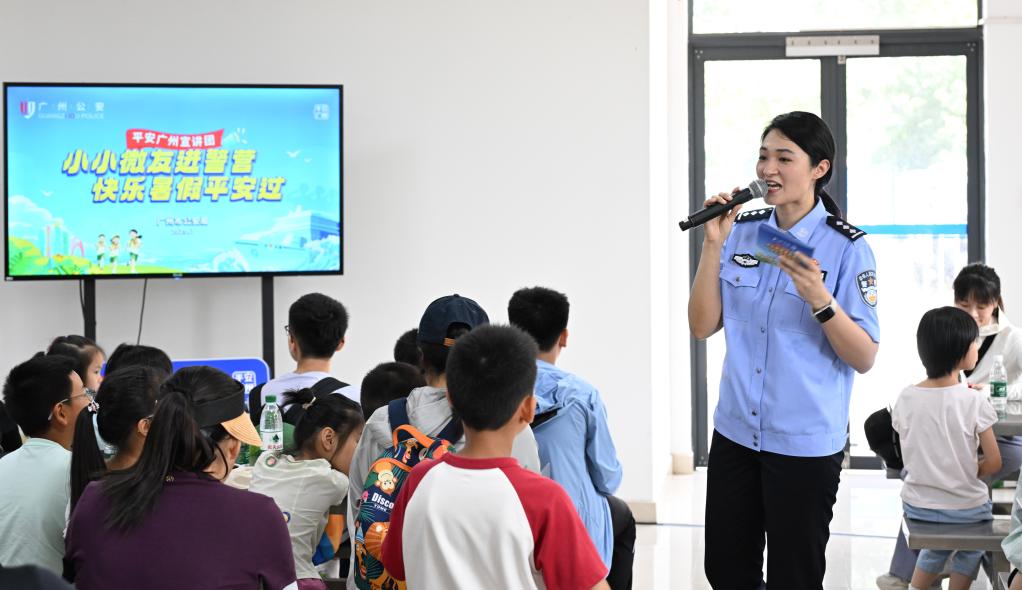 7月8日,平安广州宣讲团民警讲解安全知识。