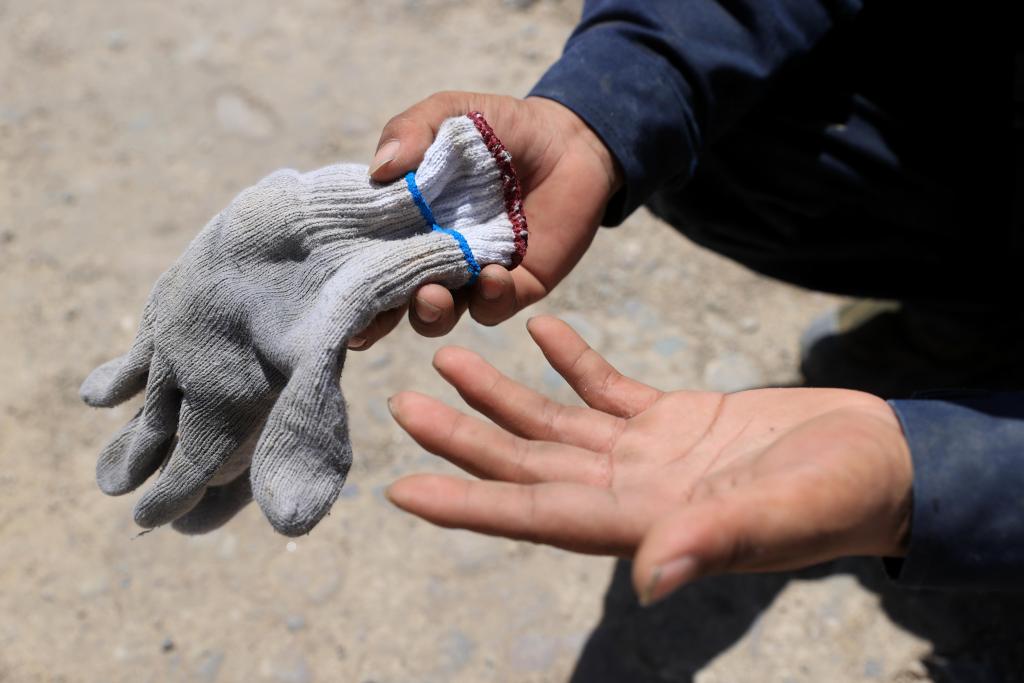 每次收工时鞋里倒出的沙能堆成‘小丘’。”