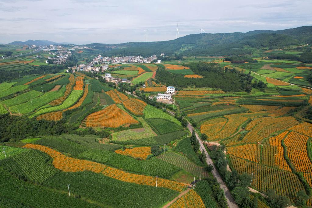 近年来,云南省曲靖市马龙区月望乡坚持“政府推动+企业引领+合作社+农户”模式,规模化发展万寿菊种植,拓宽群众增收渠道,为乡村振兴注入新动能。