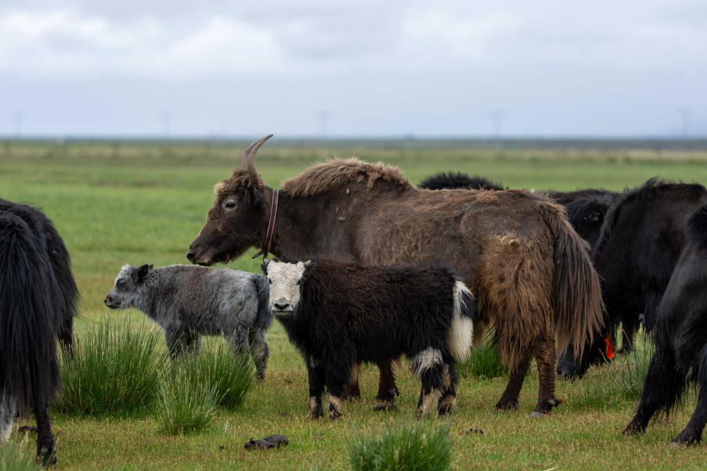 7月22日拍摄的玛旁雍错湿地上的牦牛。