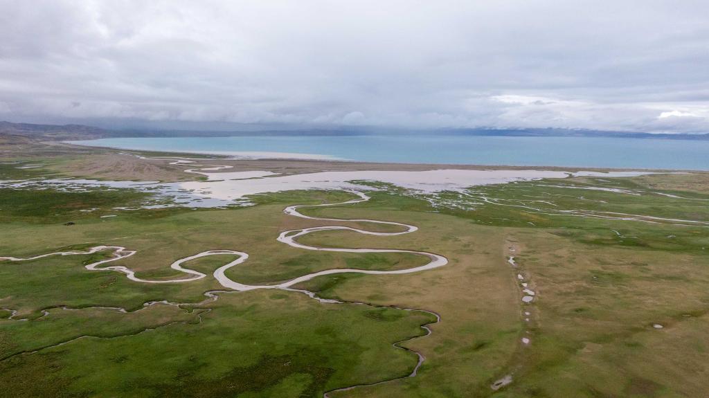 7月22日拍摄的玛旁雍错湿地一景(无人机照片)。
