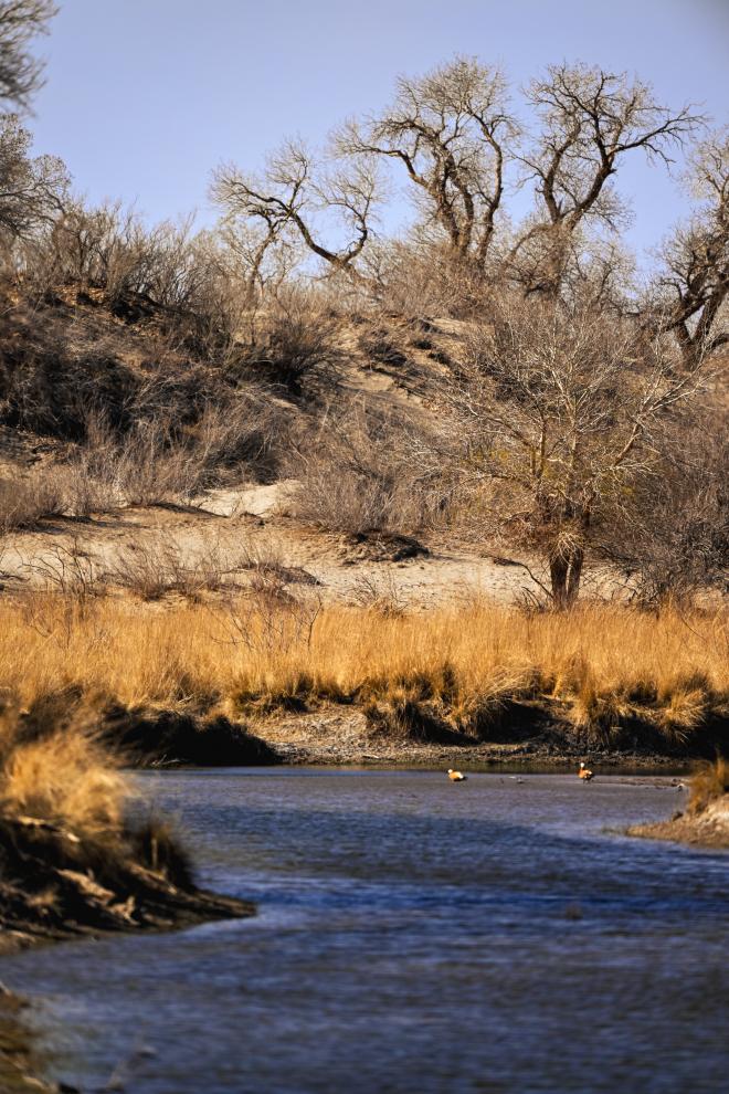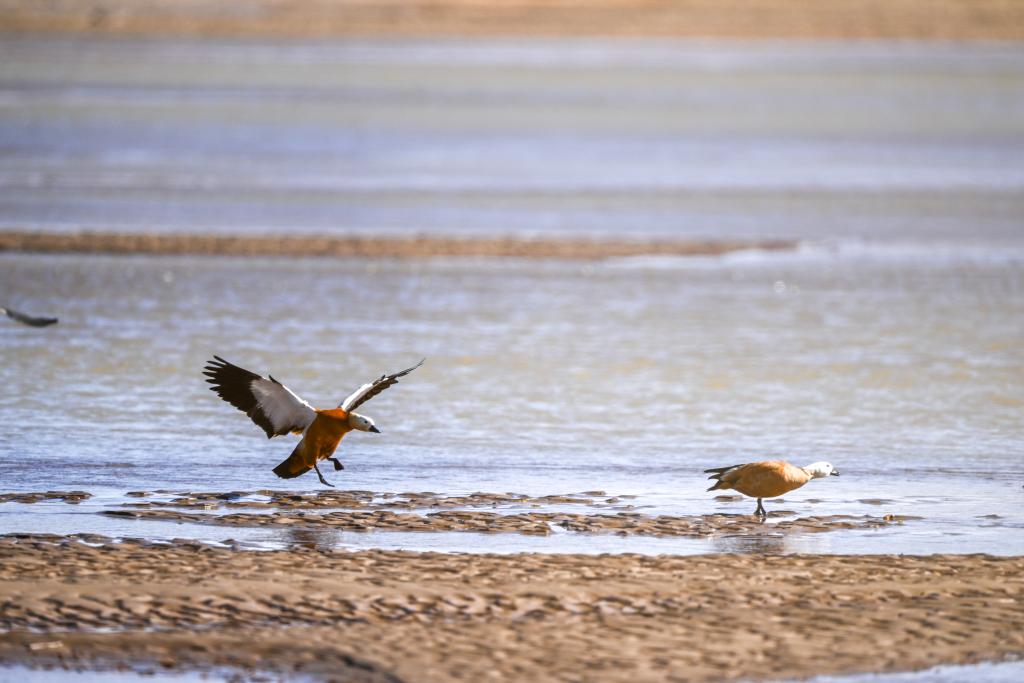 2025年4月22日在内蒙古阿拉善盟额济纳旗弱水河拍摄的赤麻鸭。