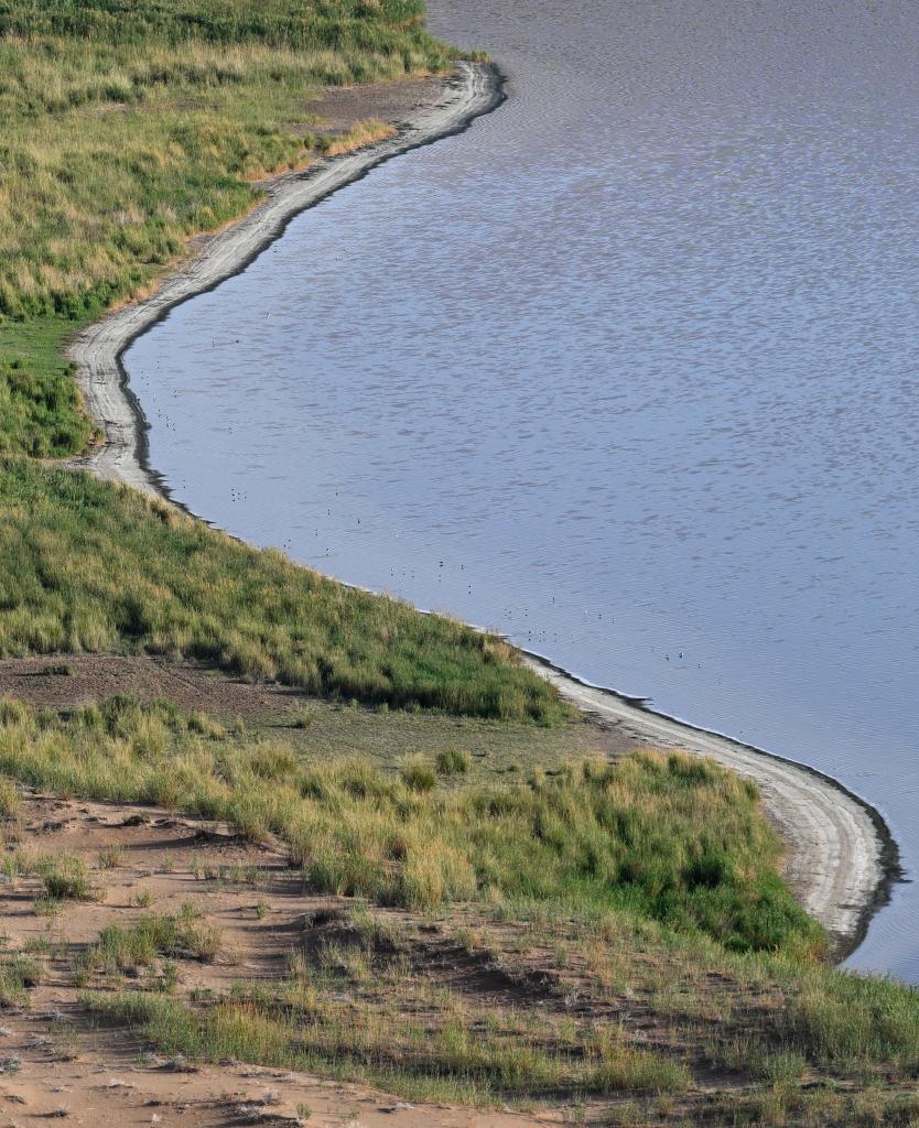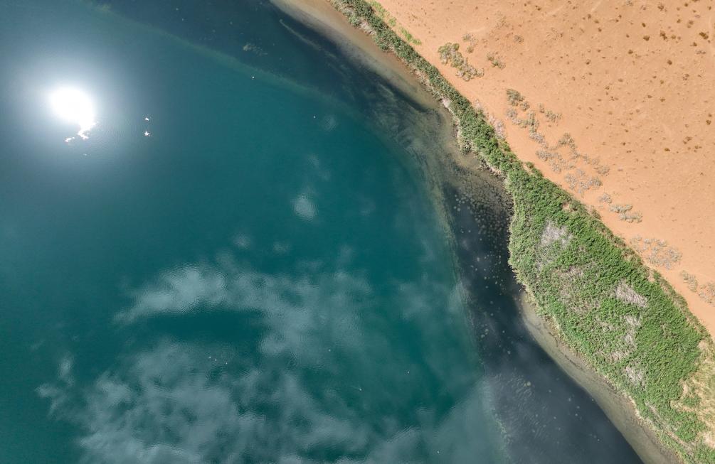 2024年10月14日在内蒙古阿拉善盟额济纳旗拍摄的居延海景区(无人机照片)。