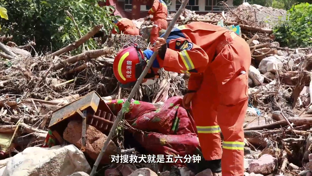 记者与承德市消防救援支队双桥大队普乐路消防救援站队员一起,前往六道河镇杨家台村,一线直击搜救现场。
