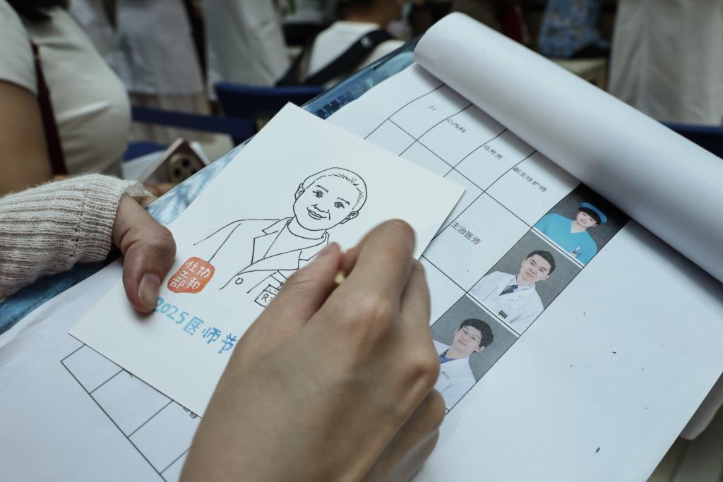 当日是第八个中国医师节,北京协和医院在东单、西单院区举办义诊活动,50余位来自临床科室及专科护理的医护代表为广大患者进行了现场健康咨询。同时,医院的志愿者还为参与当日义诊的医护人员精心绘制了专属肖像漫画。