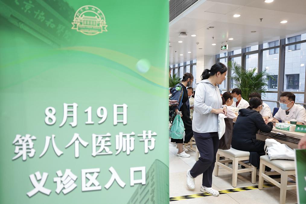 8月19日,人们在北京协和医院东单院区参加义诊活动。