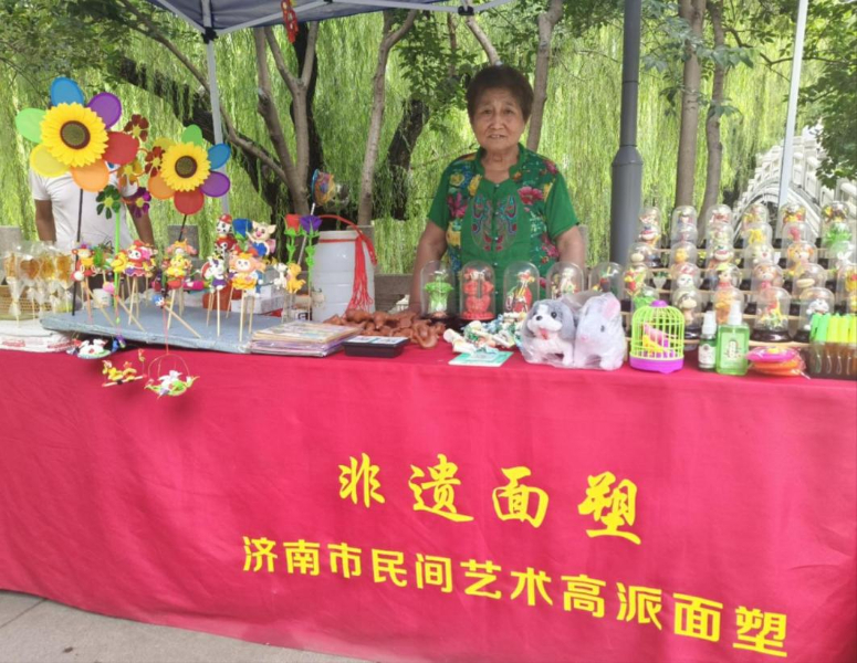 退休后,高桂英全身心投入面塑事业,每天凌晨4点便起床和面、蒸面、调色,常常忙至深夜。为改良面塑材料,她试验上百种比例,最终研制出防潮、防裂、保存期长的配方,让济南面塑在全国非遗展中崭露头角。