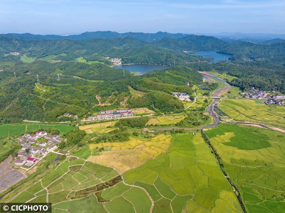 ↑2025年8月16日在江西省抚州市金溪县黄通乡曾家村拍摄的稻田。(无人机照片)CICPHOTO/邓兴东 摄 编辑:马兰