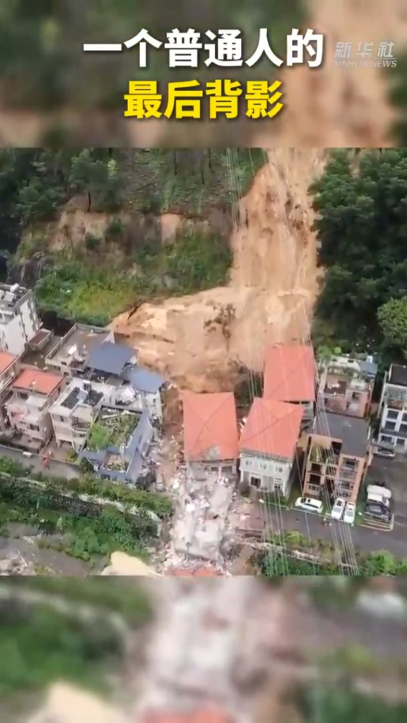 8月6日,是汤伟鹏生命定格的那一天。这张随手抓拍的照片,记录下他生命最后的背影。十几分钟后,山体垮塌,他就是被眼前的这片房屋掩埋。