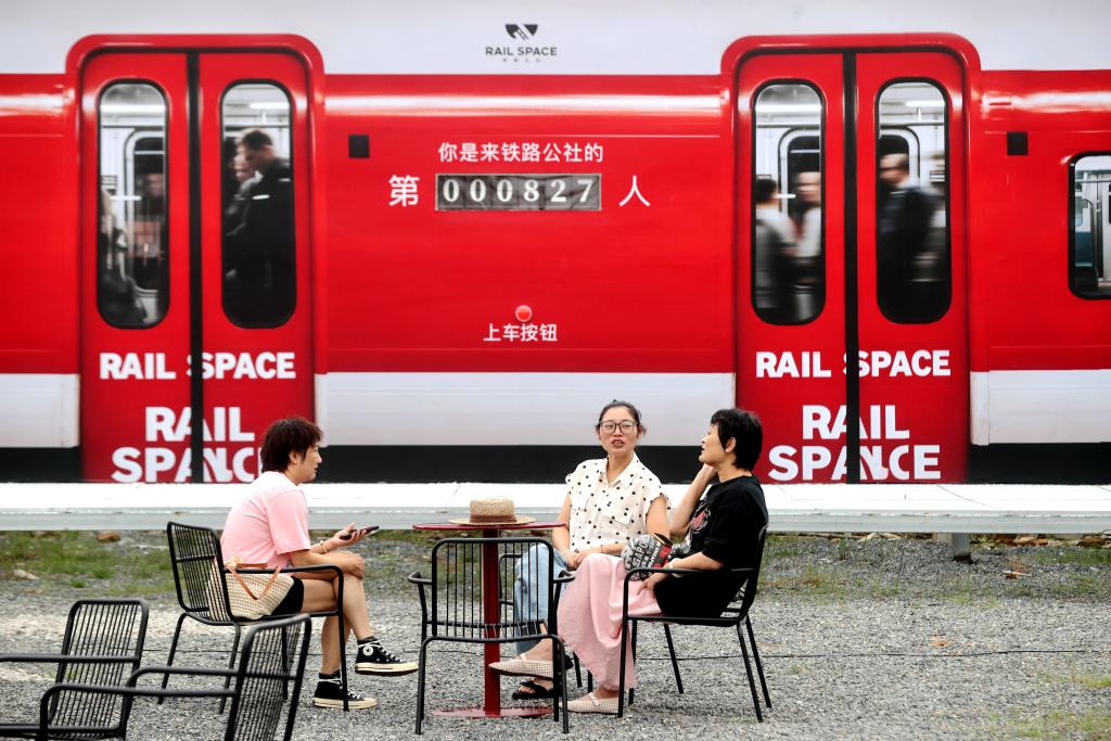人们在浙江省湖州市德清县舞阳街道上柏村“铁路公社咖啡”打卡游玩(2025年9月20日摄)。这座由废弃铁路改造而成的乡村咖啡馆,已成为承载文化社交功能、留存城市发展记忆的文旅消费新地标。