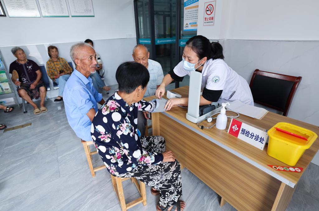 9月23日,村民在孝顺镇车客村卫生室就诊。金华市金东区孝顺镇车客村卫生室内设预检分诊区、诊疗室、输液室、挂号收费、检查检验、药房等科室,2024年5月正式向周边百姓开放接诊,承担起了孝顺镇车客村以及镇西区块百姓的基本医疗及健康管理职能,辐射人口五千余人。