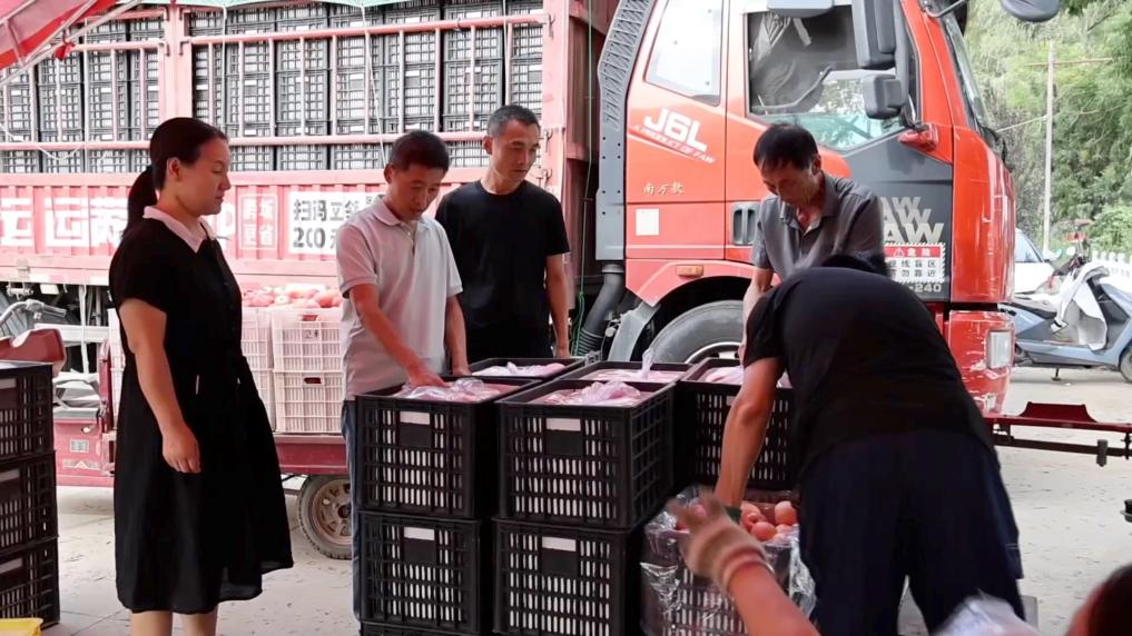 在洛川县永乡镇东井村苹果物流交易市场,一筐筐刚从果园运来的苹果整齐码放,称重、记账、装车等环节有条不紊。