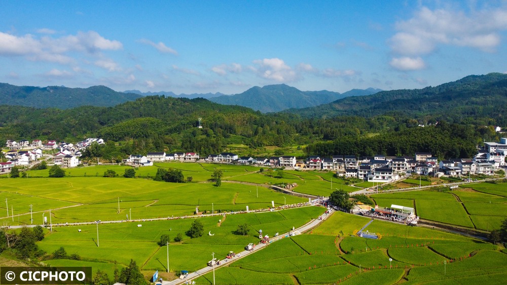↑2025年9月23日在安徽省黄山市祁门县安凌镇芦荔村拍摄的景色。(无人机照片)CICPHOTO/程启群 摄