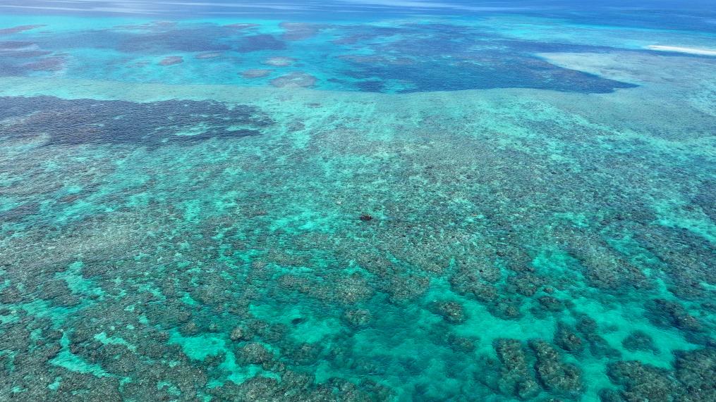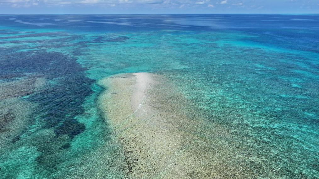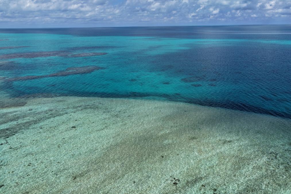 10月2日拍摄的黄岩岛礁盘与潟湖。
