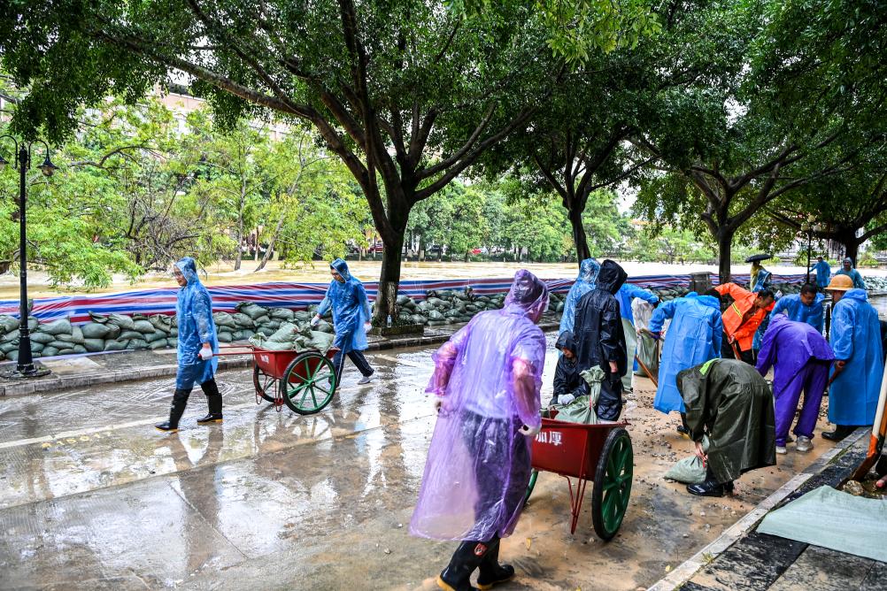 受台风影响,广西百色市多地遭遇持续强降雨,部分村屯受洪涝影响严重,多条河流水位上涨,部分道路因塌方和山体滑坡受阻……面对汛情灾情,百色市广大干群迅速投入抢险救灾工作,筑起守护家园的防线。