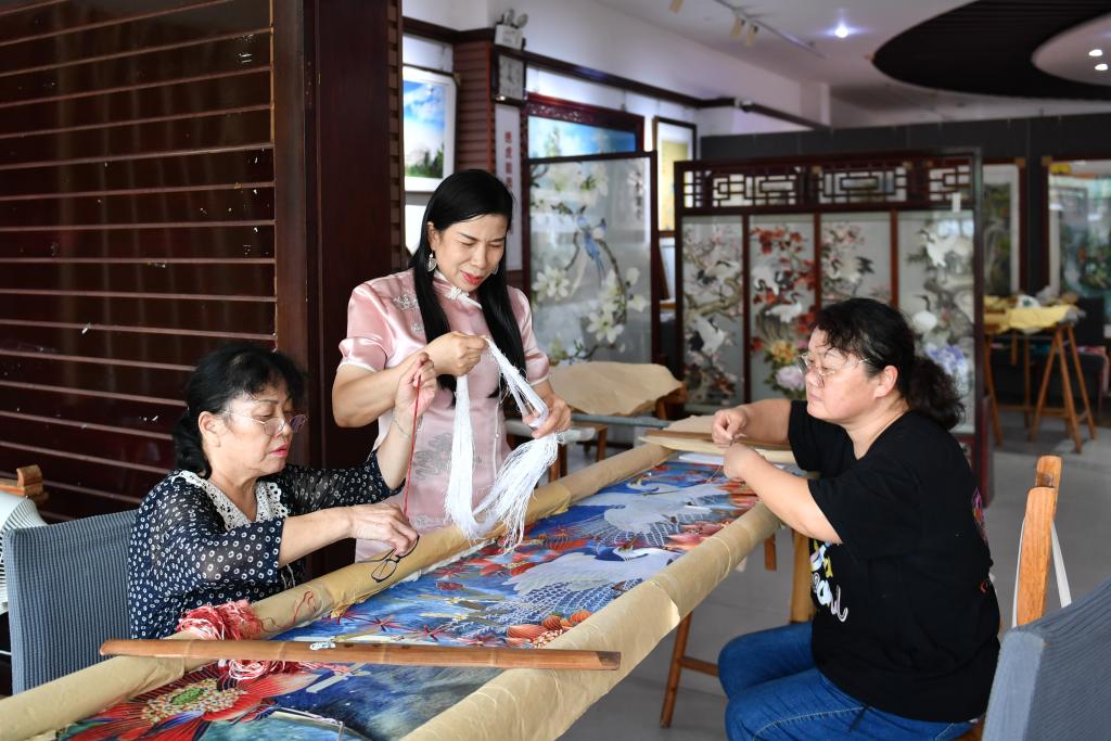多年来,江再红走进大中小学授艺,带徒传承,积极推广湖湘文化和非遗技艺,培养大批湘绣传人……江再红和团队尝试通过数字化设计、跨界联名、沉浸式体验等形式,探索湘绣的创新发展之路。