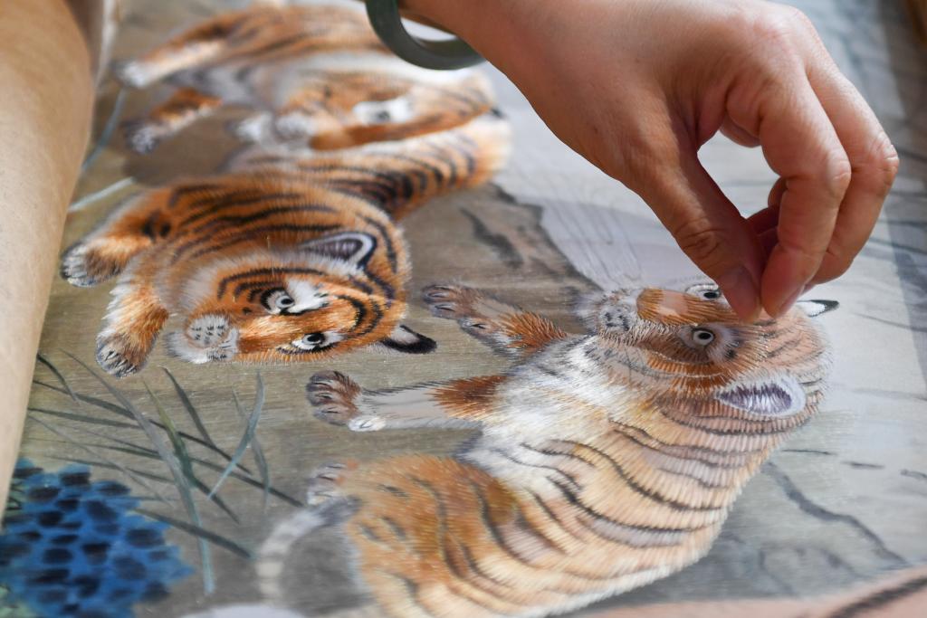 湘绣是中国四大名绣之一,有两千多年历史,主要依靠针线刻画来表现物象神态。1968年,江再红出生于湖南长沙一个湘绣世家,从小学习刺绣,后来进入湖南省湘绣研究所,跟随湘绣大师们深造。