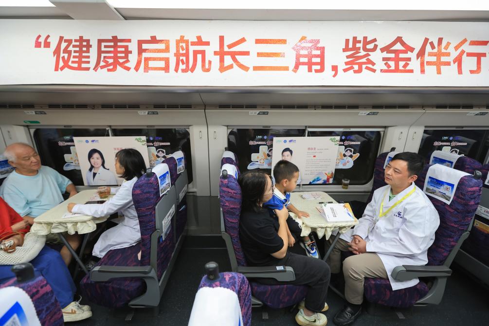 10月19日,“健康启航长三角 紫金伴行到万家”义务健康咨询活动在G8388次长三角超级“环线”列车上开展,来自上海多家三甲医院的8名专家为旅客提供心血管内科、呼吸内科、内分泌科等多个领域的医疗咨询,并进行健康知识科普,受到旅客欢迎。