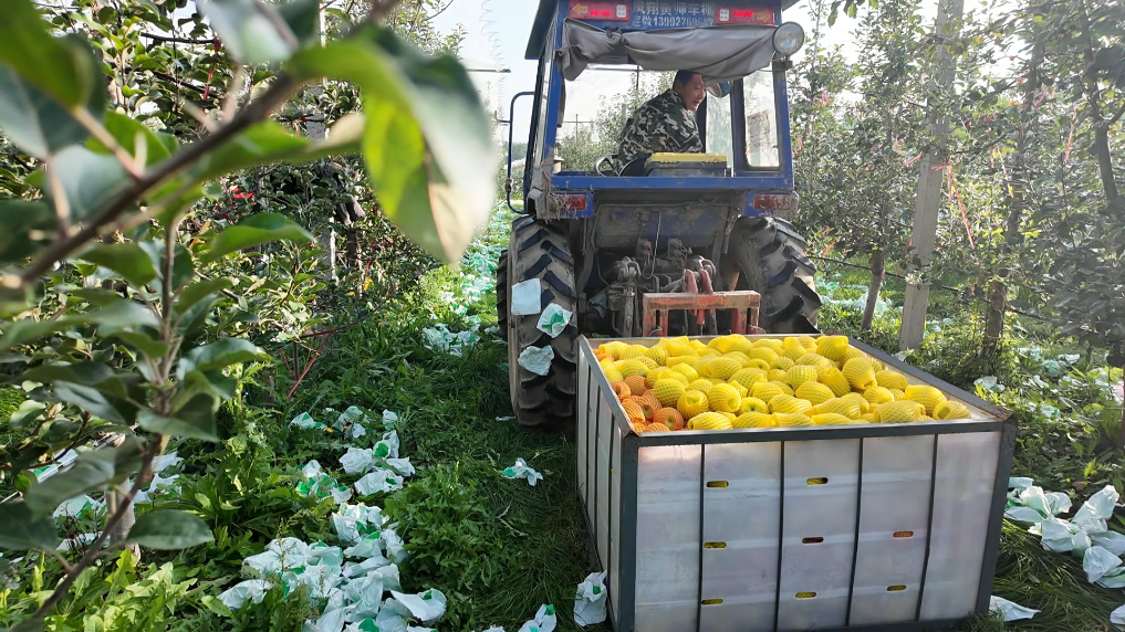 在淳化县铁王镇梁武帝村,红彤彤、黄澄澄的苹果挂满枝头,清甜果香随风弥漫。