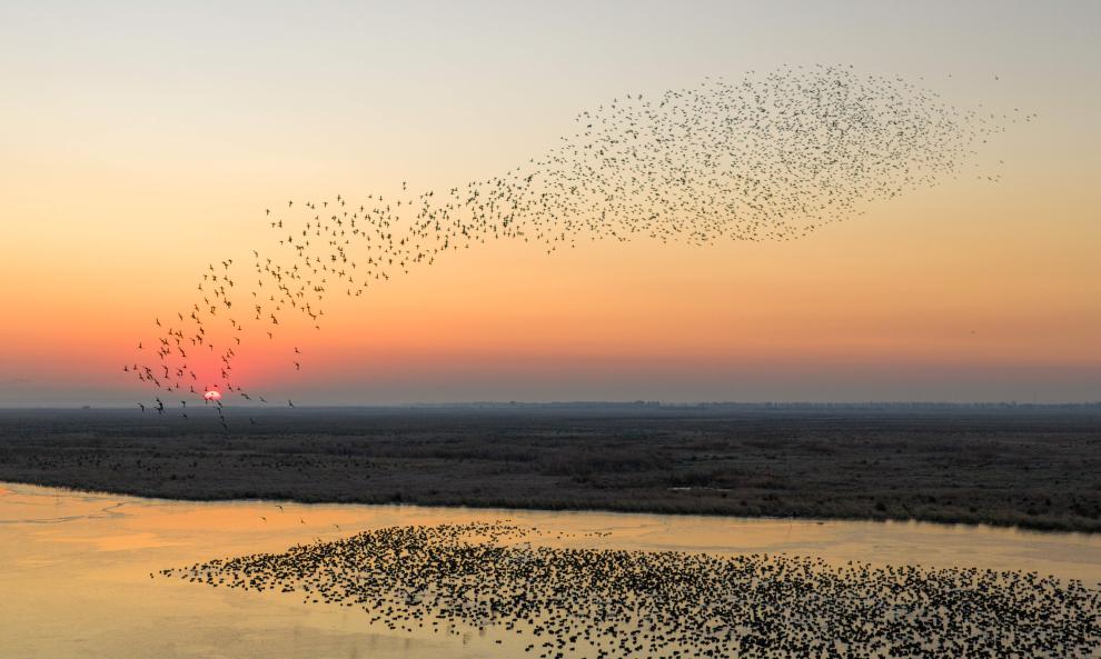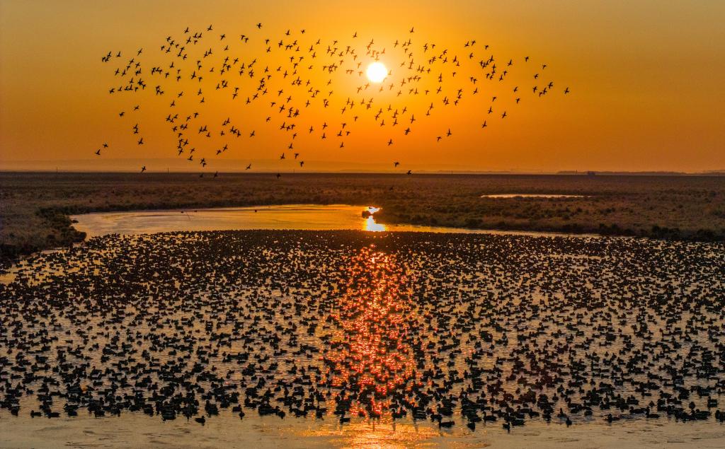 时下正值黑龙江省候鸟迁徙高峰期,全省各个候鸟栖息地的候鸟大量聚集南迁,铺展出万鸟翔集的生态画卷。