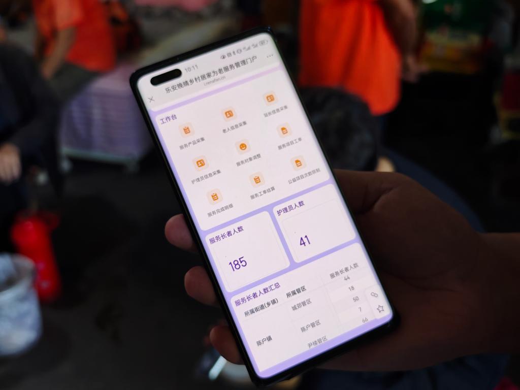 “乐安晚晴”项目搭建的智慧养老平台,集“服务项目派单、护理人员接单、服务记录上传、服务工单审核、服务工单结算”于一体,可实现从服务派出、服务执行到服务评价全流程管理。低龄老人通过提供服务,能够每个月获取1000元左右的收入。目前,项目已经开展3400余次服务,服务时长近4000小时,办结率、满意率均达100%。